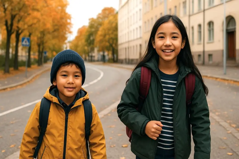 विद्यालय आउँदा–जाँदा सुरक्षित बाटो छान्नुहोस् र बच्चासँग मिलेर केहीपटक अभ्यास गर्नुहोस्। हेलसिन्की जस्ता ठूला सहरमा सडक र साइकल मार्ग व्यस्त हुन सक्छन्, त्यसैले यातायात नियमबारे पटक-पटक सम्झाउनु आवश्यक छ।