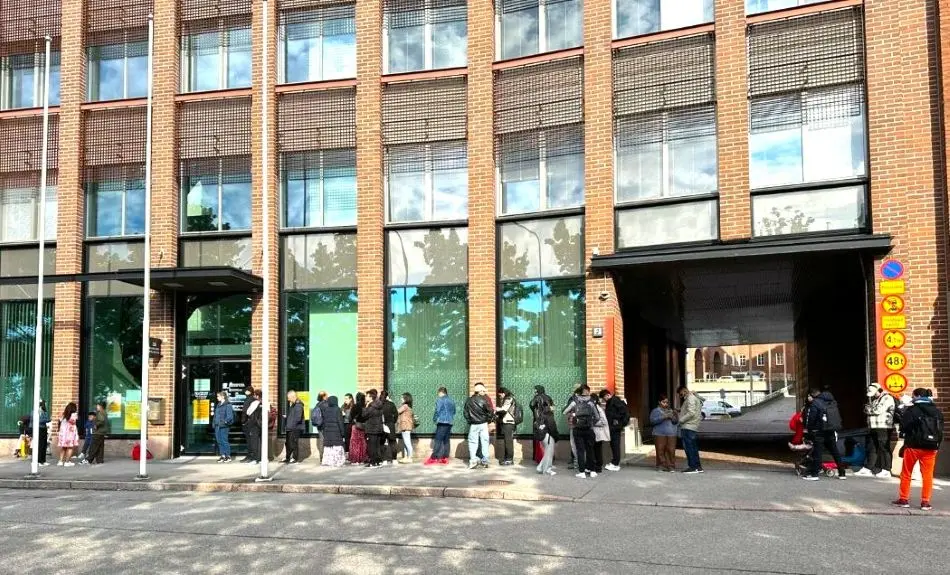 फिनल्यान्डको राजधानी हेलसिन्की स्थित DVV (फिनल्यान्डको डिजिटल तथा जनसङ्ख्या डाटा सेवा एजेन्सी Digi- ja väestötietovirasto) को कार्यालयबाहिर पछिल्ला दिनहरूमा बिहानै देखि लामो लाइन लाग्ने गरेको पाइएको छ।