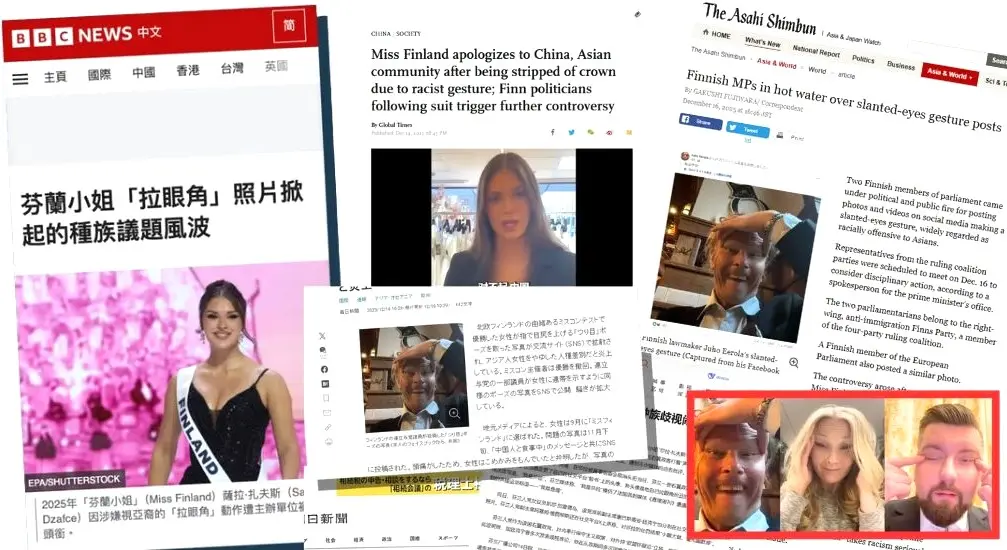 चिनियाँ सरकारी मिडिया ग्लोबल टाइम्सले यो प्रकरणलाई प्रमुखता दिँदै फिनिस राजनीतिज्ञहरूको व्यवहारको निन्दा गरेको छ। जापानी मिडिया असाही शिम्बुनले पनि नेताहरूको इशारालाई ‘एसियालीको अपमान’ ठानेको छ।